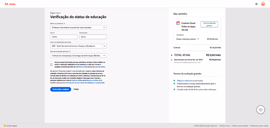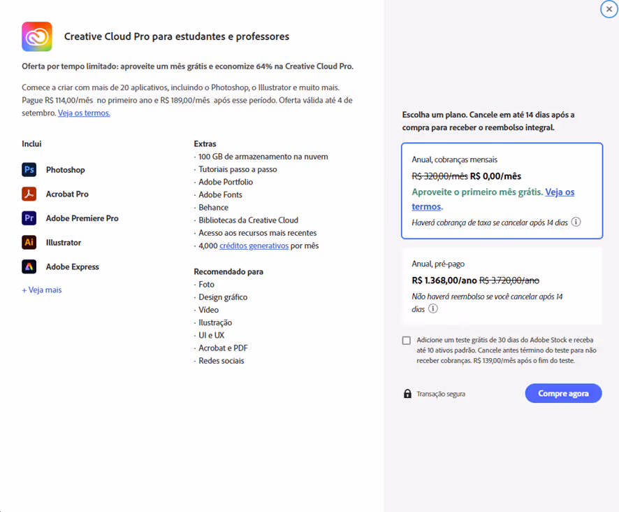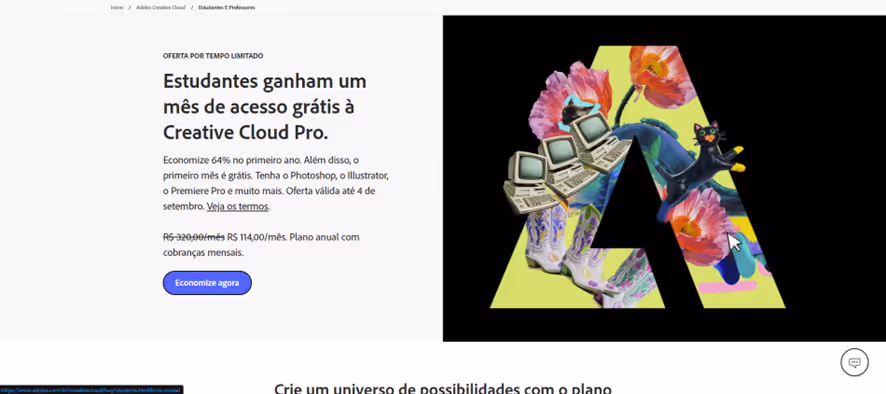 Passo 1: Acesse o link https://www.adobe.com/br/creativecloud/buy/students.html